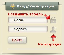 Если вы хотите зарегистрироваться или напомнить пароль, но не знаете, как это сделать, нажмите на соответствующую иконку в блоке «вход/регистрация» (см. картинку).